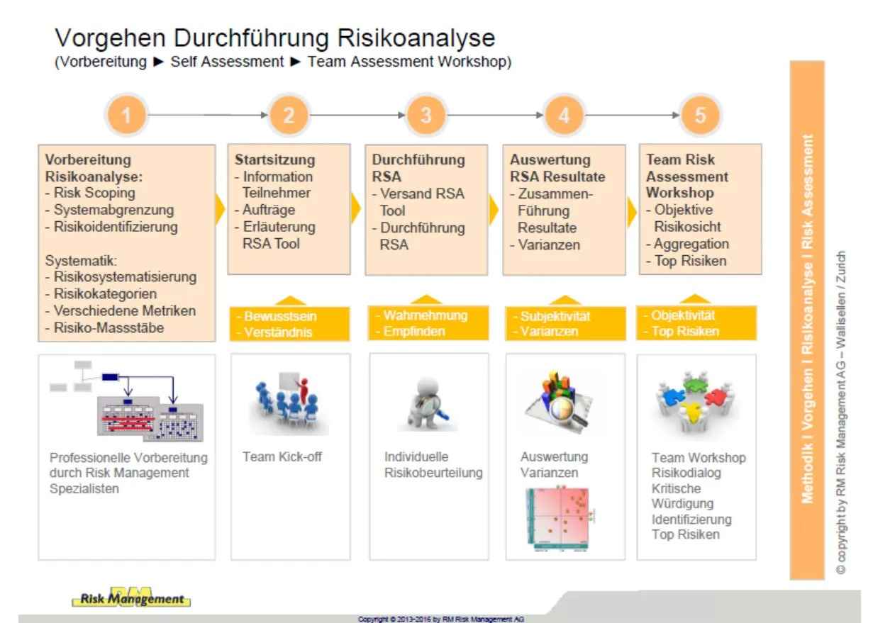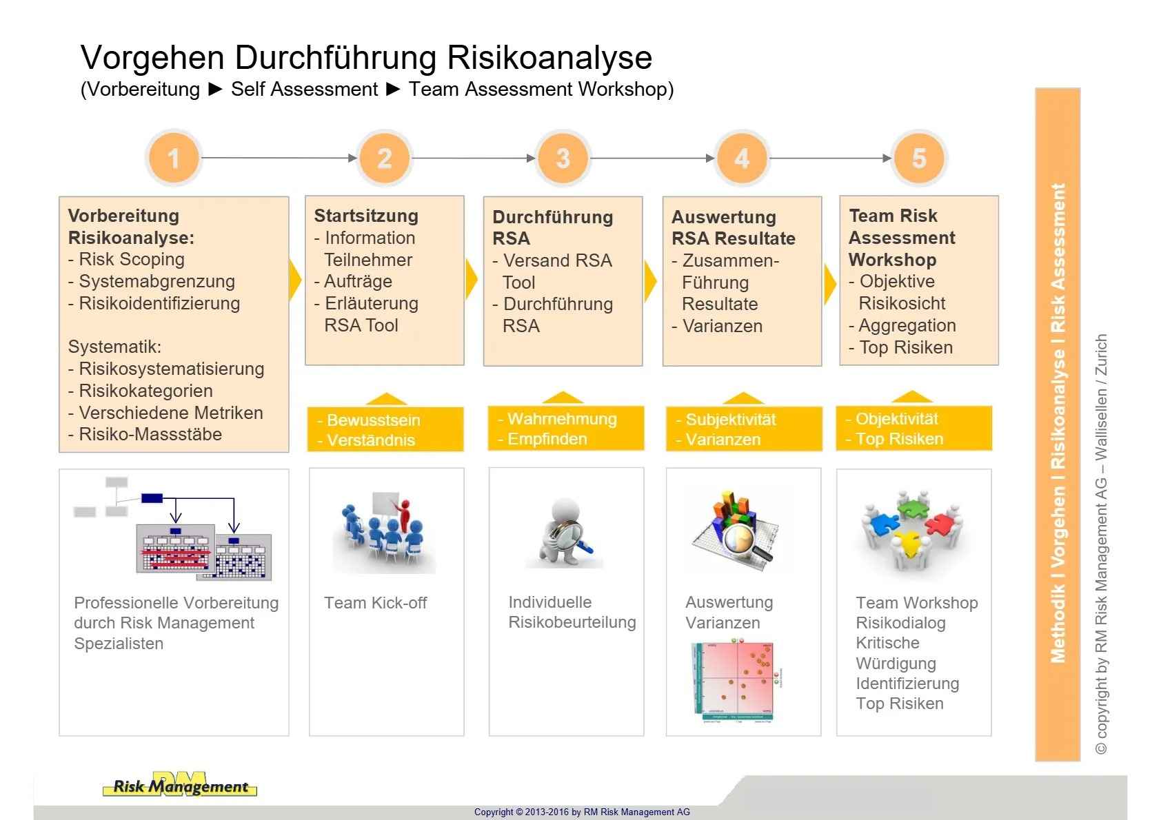Das Dokument beschreibt eine cccc. Es umfasst Vorbereitung, Identifizierung und Bewertung von Risiken sowie Workshops zur Aggregation und Definition von Top-Risiken. Dabei werden Methoden wie Self Assessments, RSA-Tools und Teamdialoge eingesetzt.