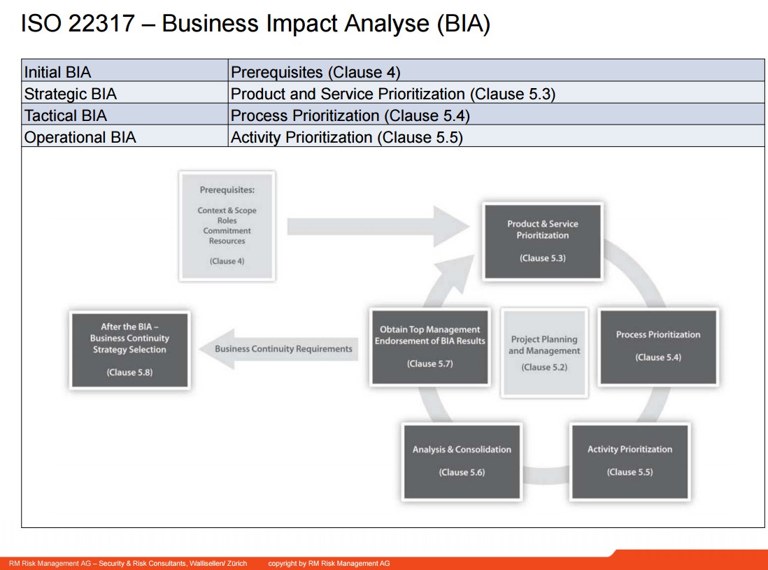 Das Dokument erläutert die Business Impact Analyse (BIA) nach ISO 22317. Es umfasst die strategische, taktische und operative Priorisierung von Produkten, Prozessen und Aktivitäten. Ziel ist die strukturierte Bewertung und Sicherstellung der Geschäftskontinuität.